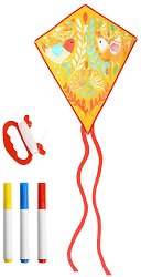 Оцвети си сам хвърчило с комплекта от Tooky Toy! Той е подходящ за деца над 3-годишна възраст и се състои от хвърчило за оцветяване, корда на макара, 3 цветни маркера и удобна чанта с дръжка за съхранение. На хвърчилото са изобразени цветя, които малчуганът да оцвети по свой избор. Когато е готово, излезте в парка на открито и го пуснете. Хвърчилото е с размери 56.1 x 70.2 cm. ...