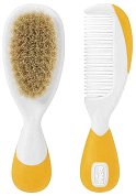 Комплектът четка и гребен с естествен косъм за лесно разресване на "Chicco" е подходящ за използване от самото раждане на вашето бебе. Четката е с мек естествен косъм, който нежно масажира скалпа, стимулирайки растежа на косата. Гребенът е със заоблени върхове, предпазващи от нараняване бебешката кожа. И двата аксесоара имат неплъзгащи дръжки. Приблизителната дължина на четката и гребена е 15 cm. ... |