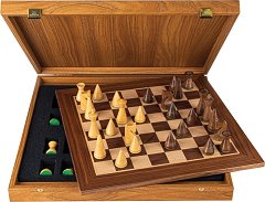 Понякога шахът се превръща в много повече от игра. Докато за едни предстоят първи стъпки в местенето на фигури и обмислянето на стратегически ходове, за други шахът вече е страст и любимо хоби. А за трети може да е дори и начин на живот, протичащ в турнири. За почитателите на играта шах от "Manopoulos" предлагат луксозен комплект, който ще бъде подходящ подарък за тях независимо от повода. Той се състои от кутия с основа за игра на шах и 32 дървени фигури в светло и тъмно кафяв цвят. Кутията е изработена от висококачествен дървен материал, орех, и е с размери 40 x 40 cm. От вътрешната страна разполага с място ... |