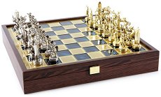 Понякога шахът се превръща в много повече от игра. Докато за едни предстоят първи стъпки в местенето на фигури и обмислянето на стратегически ходове, за други шахът вече е страст и любимо хоби. А за трети може да е дори и начин на живот, протичащ в турнири. За почитателите на играта шах от "Manopoulos" предлагат луксозен комплект, изработен с внимание към детайла. Той се състои от основа за игра на шах, кутия за съхранение и 32 фигури в сребрист и златист цвят. Игралното поле е с размери 44 x 44 cm. ... |