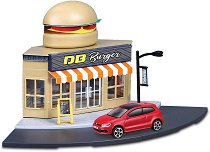 Сглобете си сами заведение за бързо хранене с отварящи се врати с комплекта от "Bburago"! Той е подходящ за деца над 3-годишна възраст и се състои от елементи за сглобяване на заведение, количка, стикери и аксесоари. Заведението е изработено с внимание към детайлите и когато поглеждате през прозорчетата, ще можете да виждате детайлите и касата. Елементите за сглобяване са изработени от здрава пластмаса, благодарение на което ще можете да ги използвате дълго време. Количката е от метал и представлява умален модел на Volkswagen Polo GTi Mark 5. За да стане играта още по-интересна, може да си сглобите цял град с ...