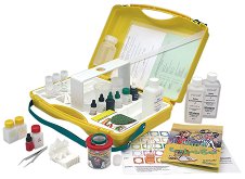 Преносимият комплект EcoLabBox е истинска мобилна лаборатория за учебни цели, предназначена за провеждане на експерименти с вода, почва и въздух на открито. С негова помощ ще можете да откривате и изследвате важни вещества, които влияят на околната среда. Ясните инструкции на български език включват 21 експеримента и ви водят "стъпка по стъпка", а качеството на реагентите гарантира надеждността на тестовете. Комплектът е подходящ за групи деца над 12 години. Образователният комплект позволява следните анализи: тестване на вода, включително определяне (реагенти) на фосфат (PO 4 ), нитрат (NO 3 ), нитрит (NO 2 ... |