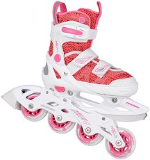 Защо да купуваме само едно, след като можем да имаме и 2 в 1? Кънките за лед от Tempish могат лесно да се трансформират в ролери и са със специален дизайн за малки и по-големи дами. Те са подходящи за спортно любителско каране от начинаещи и по-напреднали скейтърки. Конструкцията им позволява лесна смяна на шасито от ролер в кънка за лед с помощта на шестограм, който е включен в комплекта. Обувката е изработена от твърда термо пластмаса, издръжлива на до -20° C. Кънките имат удобна бързосъхнеща вътрешна подплата, която при необходимост може да се сменя. Кракът е правилно позициониран в обувката, благодарение на ... |
