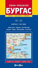 Съдържа карти на: Северната индустриална зона в М 1:12 000; ж.к. "Меден рудник" в М 1:12 000; кварталите "Горно Езерово", "Долно Езерово", Крайморие", "Лозово" и "Сарафово" в М 1:12 000; индекс на улиците; променени имена на улици. Картата е с размери 70 x 100 cm. ... |