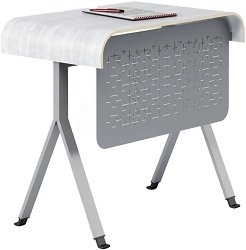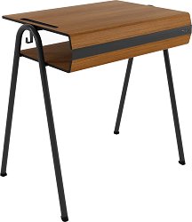 Ученическият чин Norme от RFG e проектиран така, че да осигури удобство, комфорт и правилна стойка на детето по време на учене. Чинът има огънат работен плот, който е изработен от HPL. Този материал e ламинат, който е получен чрез пресоване под високо налягане, откъдето идва и името му HPL - high pressure laminate. HPL плотовете за маси имат значително по-малка дебелина от дървото и масивната дървесина, но притежават изключителна стабилност и гъвкавост. Те са водоустойчиви и устойчиви на износване. Работната площ е подходяща за писане, четене и рисуване. Ученическата маса е оборудвана с метална кошница за учебници и ... |