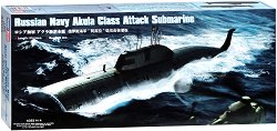 Умален модел на руска подводница - Лира клас ССН. За да може да сглобите и залепите този макет, ви е необходимо лепило. Елементите на модела са направени от едноцветна пластмаса. Моделът може да се оцвети с боички. За Лира клас ССН Проект 705 на руския флот (познат като Лира) е бил клас от подводници задвижвани с атомна енергия. Класът е известен и с наименованието "Alfa", което е дадено от НАТО. Те били най-бързият клас военни подводници, изградени на базата на прототип K-222. Лирата била с уникален дизайн сред подводниците. В допълнение на революционната употреба на титан за корпуса, бил използван ... |