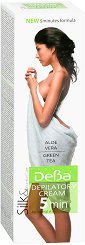 Искате бързо и безболезнено да отстраните нежеланото окосмяване по тялото си? Специалистите на "Дева" ви предлагат депилиращ крем, който ще ви помогне да премахнете космите от тялото само за няколко минути. Едновременно с това той хидратира и омекотява кожата, предпазвайки я от възпаления. Това се дължи на вложените във формулата му екстракти от алое вера и зелен чай, които притежават противовъзпалителни, антибактериални и хидратиращи свойства. Крем депилатоарът оставя кожата гладка, мека и сексапилна за дълго време. Премахването на космите с крем депилатоар има по-дълготрайно действие в сравнение с ...