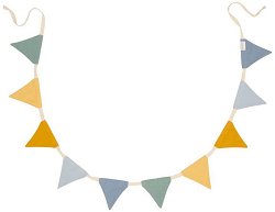 Добавете щастие в детската стая с гирлянда Blue от Little Dutch. Гирляндът с флагчета мигновено озарява и е идеален за декорация на детското легло или стая. Той е изработен от 100% памук със сертификат Oeko-Tex. Дължината на лентата е 200 cm и се закрепя чрез завързване в двата ѝ края. Препоръки за почистване: Може да се почиства на ръка. Не е подходящ за пране в перална машина. ...