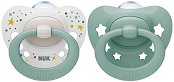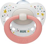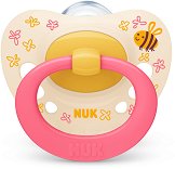 Залъгалките са част от серията Signature, в която ще откриете още бебешки продукти по темата. ... Залъгалките на NUK са подходящи за бебета от 0+ до 6 месеца и са чудесен начин за успокоение на бебето. Те са по-тънки и тесни в основата си за намаляване на натиска върху зъбите и челюстта, а освен това са плоски и гладки в долната си част за повече място за сукателните движения на бебето. Биберонът им е изработен от мек и деликатен силикон, който не дразни детските венци. Той е оформен като майчиното зърно по време на кърмене за естествено усещане и пасва оптимално на бебешката уста. Специалната му ортодонтична форма ... |