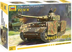 Мащабно умален сглобяем модел на германски танк "Panzer IV Ausf.H", използван по време на Втората световна война. Брой части: 147. Приблизителна дължина на сглобения модел: 100 mm. Мащаб на модела: 1:72. За да може да сглобите и залепите този макет, ви е необходимо лепило. Елементите на модела са направени от едноцветна пластмаса. Моделът може да се оцвети с боички. Препоръчани боички от производителя за оцветяване на модела - "Humbrol": 53 Gunmetal 34 White 93 Desert yellow 33 Black 110 Natural wood 117 US Light Green 160 German Camouflage Red Brown 118 US tan 27003 ... |
