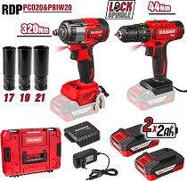 Комплектът RDP-PCD20&PBIW20 на Raider от серията Pro включва акумулаторната ударна бормашина, акумулаторен ударен гайковерт, R20 Батерия Li-ion, R20 зарядно и вложки. Акумулаторната ударна бормашина RDP-PCD20 е компактен и мощен инструмент, подходящ за пробиване, завинтване и ударно пробиване в различни материали. Разполага с 2-скоростен редуктор, въртящ момент от 44 Nm и ударна функция. Снабдена е с гумирана ръкохватка за комфорт, LED осветление и бързозатягащ патронник ∅ 10 mm. Акумулаторният ударен гайковерт RDP-PBIW20 е безчетков модел с въртящ момент от 320 Nm, подходящ за тежки приложения като ... |