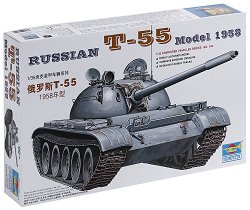 Умален модел на руски танк - Т-55. Дължината на модела е 26.5 cm. Т-55 е съветски основен боен танк от времето на Студената война. Първият прототип се появява през 1946 година, като модификация на Т-54, малко след края на Втората световна война и е революционен за времето си. И се превръща в най-произвежданият танк в историята, създадени са повече около 100 000 машини от 1949 година насам. До края на 1960 година, Т-55 е основният танк на въоръжение във всички войски от Варшавския договор, а до края на 1980-те той е на въоръжение в близо 60 държави по света. В съветската армия е изместен от Т-62, Т-72 и Т-80, но остава ... |