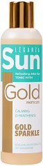 Освежаващият тоник от "Leganza" успокоява кожата след излагане на слънчеви лъчи, за да ѝ възвърне естествената мекота и влажност. Абсорбира се бързо от кожата, а златистите частици ѝ придават деликатен блясък. Формулата съдържа D-пантенол и алантоин, които омекотяват и хидратират кожата след прекараното време на слънцето. При редовна употреба, тоникът спомага поддържането на хидробаланса на кожата и ѝ придава копринена мекота. ... |