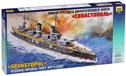 Мащабно умален сглобяем модел от пластмаса на линкор на Руския императорски флот - "Севастополь". Брой части: 432 Дължина на модела: 52 cm За да може да сглобите и залепите този макет, ви е необходимо лепило. Елементите на модела са направени от едноцветна пластмаса. Моделът може да се оцвети с боички. За "Севастополь" Линкорът "Севастополь" е първият руски дреднаут от серия балтийски дреднаути от типа "Севастопол". Строителството на му започва през 1909 година, а е спуснат на вода през 1911 година, заедно с еднотипния кораб "Петропавловск". Службата си " ...
