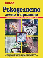 Голяма книга за ръкоделието с курсове, обяснения и илюстрации. ... В тази книга ще намерите: Най-предпочитаните техники от света на ръкоделието: Бродерия с кръстат бод, гоблен, пти-поан, цветна бродерия, рязана бродерия, ришельо, филе, мотиви на една кука и ирландско плетиво. Курсове с обяснения и снимки: За справка на опитните и обучение на начинаещите. Прегледност: Всяка глава започва с малки, лесни модели и достига до най-взискателните произведения. Практичност: Упътването и илюстрациите са на една страница, както и по-малките схеми, детайли и скици. По-големите лесно ще намерите в приложенията. Допълнителна ... |