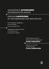 Двуезично издание на български и немски език. ... "Добрият афоризъм е мъдростта на цяла една книга, събрана в едно-единствено изречение."Твърди се, че както крилатите фрази, така и афоризмите са създадени въз основа на първични пословици. Сигурно е така, но както вече бе отбелязано, пословичната им основа много често не се разпознава, така че самите те се приемат за първични образувания. Но докато крилатите фрази по структура и по съдържание (поучителни, мъдри) - са толкова близки до пословиците, че по-често не се различават от тях, голям брой от афоризмите носят пародиен характер. Авторите на подобни афоризми ... |