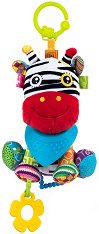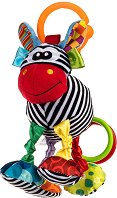 Меката играчка Donkey Danny на BaliBazoo е изработена от приятни на допир материи с ярки цветове и различни текстури, които насърчават детето да ги докосва и стиска. Тя разполага с трептящ механизъм, който е механичен и за работата му не са необходими батерии. Към играчката са предвидени пластмасови рингове, шумолящи елементи и цветни лентички. А практичната халка позволява нейното лесно закачане за детската количка, креватчето или кошчето за кола. ... |