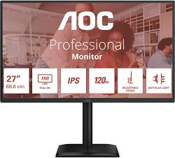 27E4U от AOC е 27" професионален монитор, проектиран да осигури комфорт и производителност в офиса или у дома. Той разполага с IPS панел с Full HD резолюция (1920×1080), който предлага ярки цветове, широки ъгли на видимост (178° / 178°) и антирефлексно покритие за по-добра четимост. Честотата на опресняване е 120 Hz, което гарантира плавно изображение и минимално размазване, а времето за реакция е 4 ms GtG, подходящо за динамични приложения. Поддържа Adaptive Sync, за да елиминира накъсвания и разкъсвания на картината. Мониторът има ергоностойка, която предлага регулиране на височината (до 150 ... |