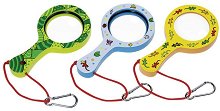 С детската лупа от Goki детето ще може да се запознае отблизо с растения и буболечки. Когато излезете навън сред природата или в парка, вземете лупата с вас и когато намерите интересен екземпляр, можете да го разгледате по-подробно нея. Също така, лещата е изключително удобна за игра на шпиони и детективи, като с нейна помощ децата ще търсят "улики" за извършени престъпления. Лупата е изработена от дърво и разполага с удобна за детските ръчички дръжка и карабинер за закачане на панталон или раница. Лупата е с размери 18 / 9.8 / 2 cm. Внимание! Цената е за 1 брой лупа! Важно! Цветът на продукта може да ... |
